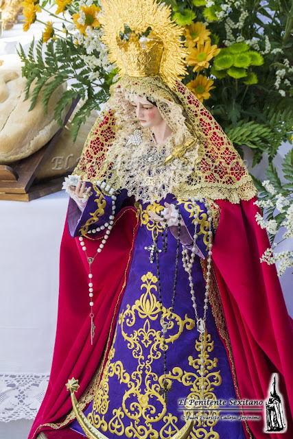 Detalle de la Cofradía de la Virgen de los Dolores en adornar los ventanales de su Casa Hermandad